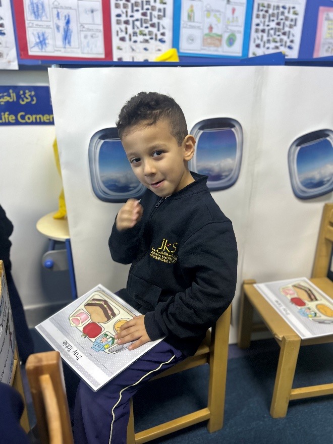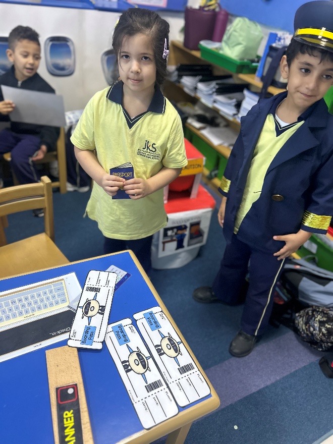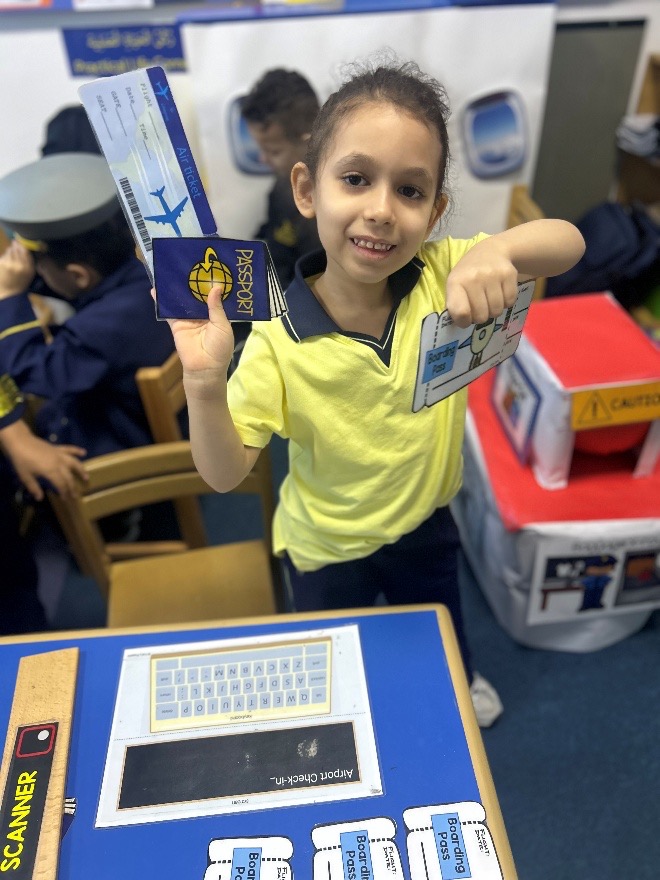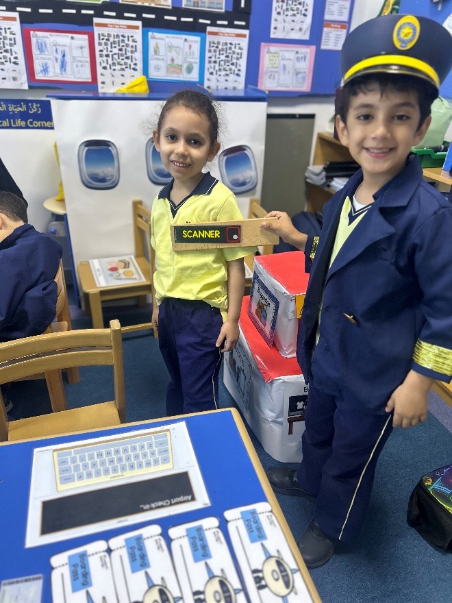 We’ve also set up an airport terminal where the children take turns being pilots, flight attendants, and airport workers, using passports, boarding passes, and our makeshift luggage scanner. Yesterday, I overheard one child say, “I like being the pilot because I can take people on adventures!” This role-play has naturally led to conversations about travel and how many people work together to make flights happen.