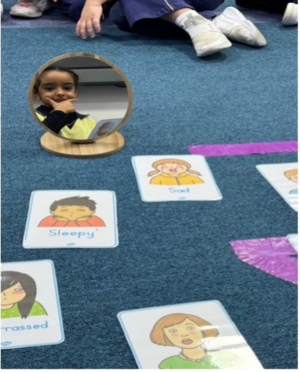 Learning came alive through fun-filled, hands-on activities that encouraged creativity and expression. Students created colorful artwork to represent different emotions, using shapes, lines, and colors to show how feelings can look. They enjoyed color-sorting activities where emotions were matched with colors that best represented them, sparking thoughtful conversations and imaginative thinking. Re-enacting feelings cards was a class favorite, as students acted out emotions using facial expressions and body language, helping them better understand how emotions are expressed.