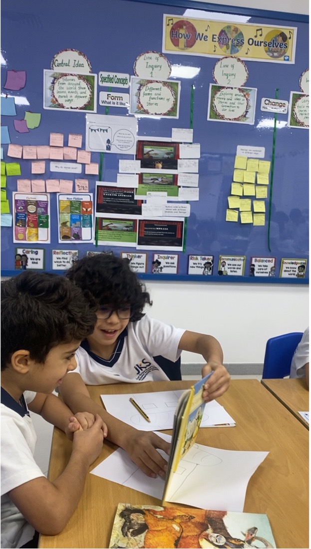 During the Grade 1 Unit of Inquiry, under the transdisciplinary theme “How We Express Ourselves,” students explored how people around the world use stories to share ideas, emotions, morals, and perspectives. Guided by the central idea “Stories from around the world share lessons, events and morals in different ways,” learners developed an appreciation for diverse voices and cultures, supporting their growth as globally minded citizens.