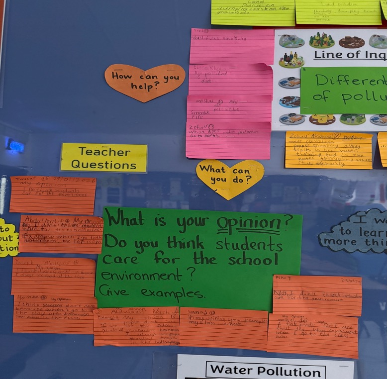 Throughout the unit, students explored three lines of inquiry: different types of pollution, the consequences of our actions on the environment, and responsible choices regarding waste. They analyzed photos, engaged in group discussions, and reflected on how their daily actions can either harm or protect the planet. By the end of the unit, students developed a stronger awareness of the importance of making sustainable decisions, and we are proud of how they are growing as environmentally conscious individuals.