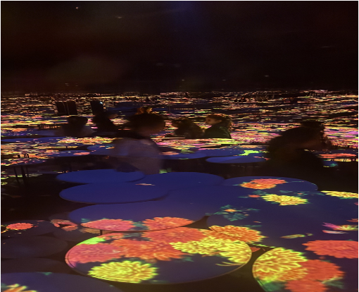 Students explored different rooms where flowers grew on the walls, fish swam under their feet, and their drawings came alive on large screens. Many students shared thoughtful reflections. One student said, “I felt like I was inside a painting!” Another explained, “The art listened to us because it changed when we moved.”