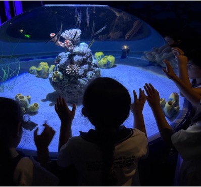 Next, we explored the aquarium and saw a wide variety of colorful fish swimming in their beautiful tanks. Some were tiny and quick, while others were large and graceful. The children enjoyed spotting different shapes and patterns and sharing what they noticed with one another.